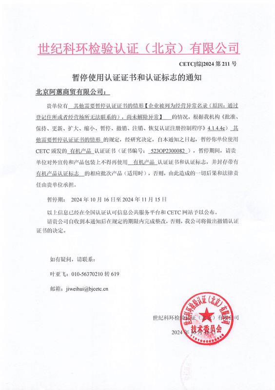 暫停使用認(rèn)證證書和認(rèn)證標(biāo)志的通知