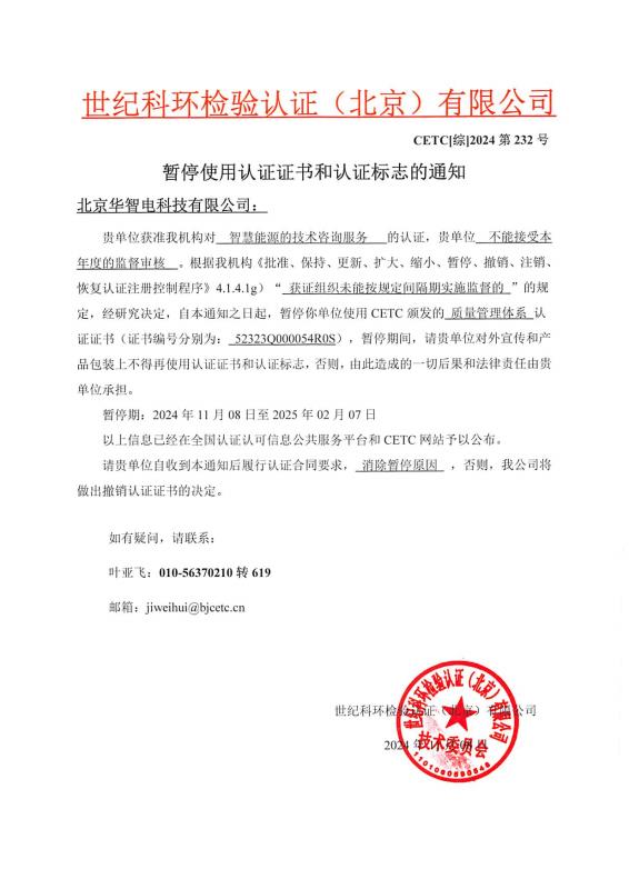 暫停使用認(rèn)證證書(shū)和認(rèn)證標(biāo)志的通知