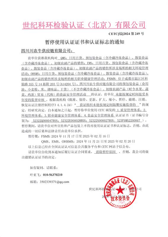 暫停使用認(rèn)證證書(shū)和認(rèn)證標(biāo)志的通知