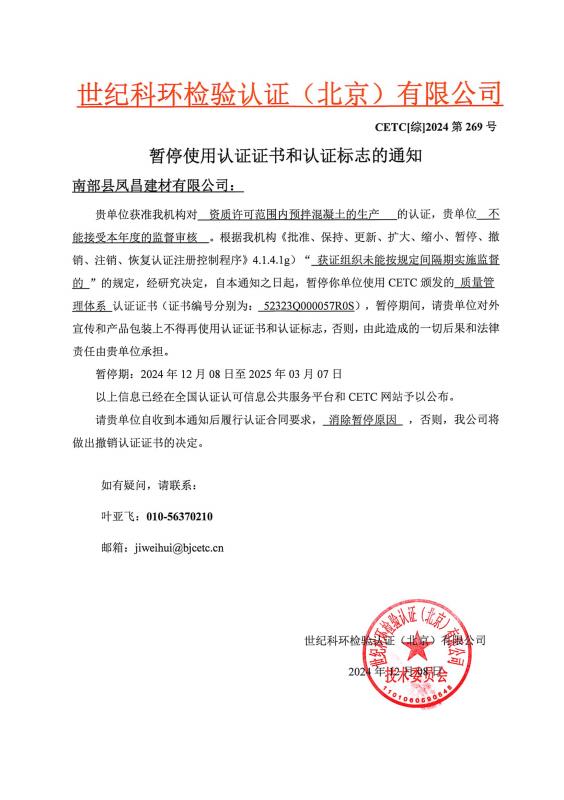 暫停使用認(rèn)證證書和認(rèn)證標(biāo)志的通知