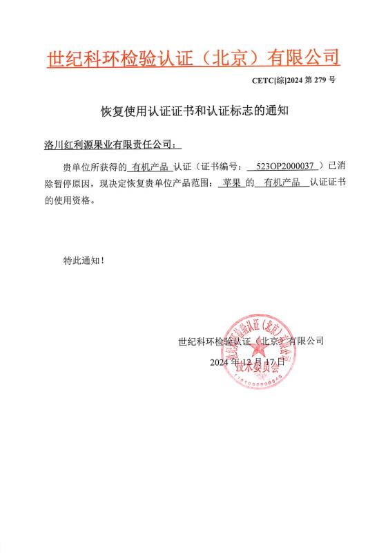 恢復(fù)使用認(rèn)證證書和認(rèn)證標(biāo)志的通知