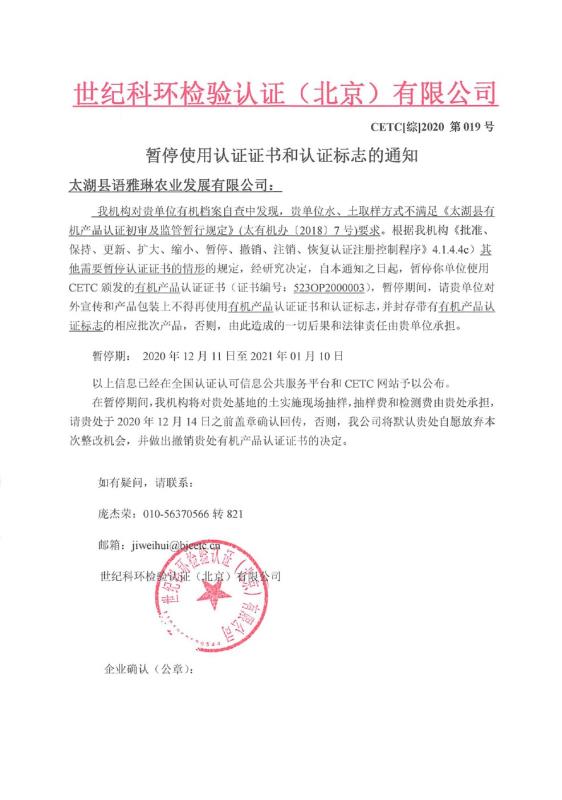 暫停使用認(rèn)證證書(shū)和認(rèn)證標(biāo)志的通知