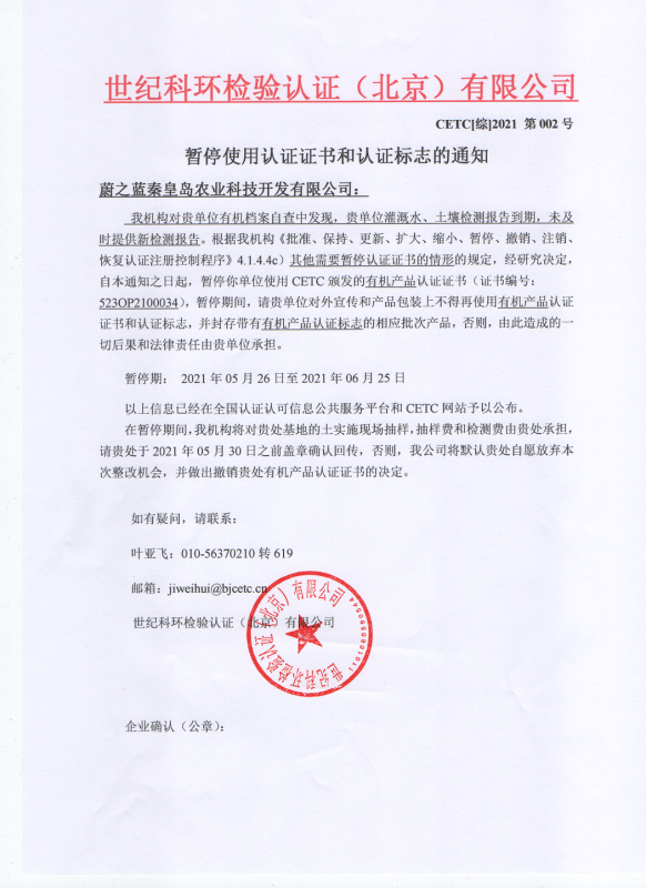 暫停使用認(rèn)證證書(shū)和認(rèn)證標(biāo)志的通知
