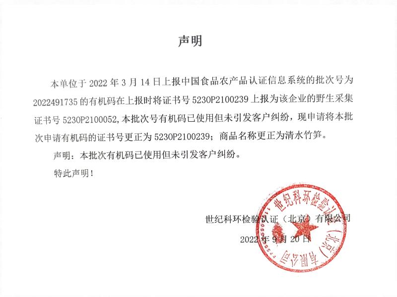 有機(jī)標(biāo)志信息更正說(shuō)明