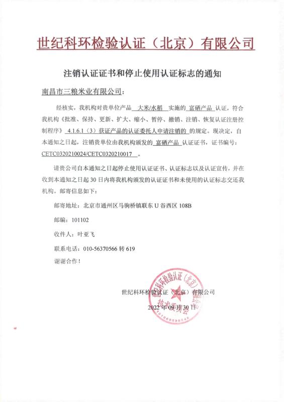 注銷認(rèn)證證書和停止使用認(rèn)證標(biāo)志的通知