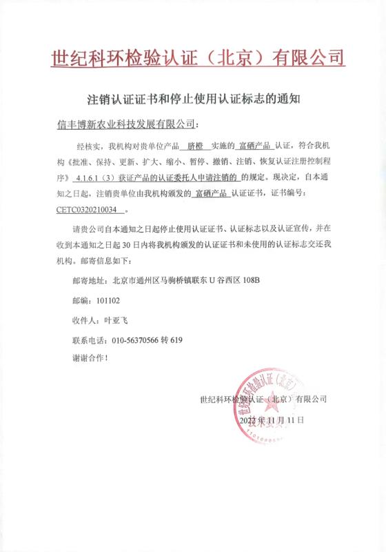 注銷認(rèn)證證書和停止使用認(rèn)證標(biāo)志的通知