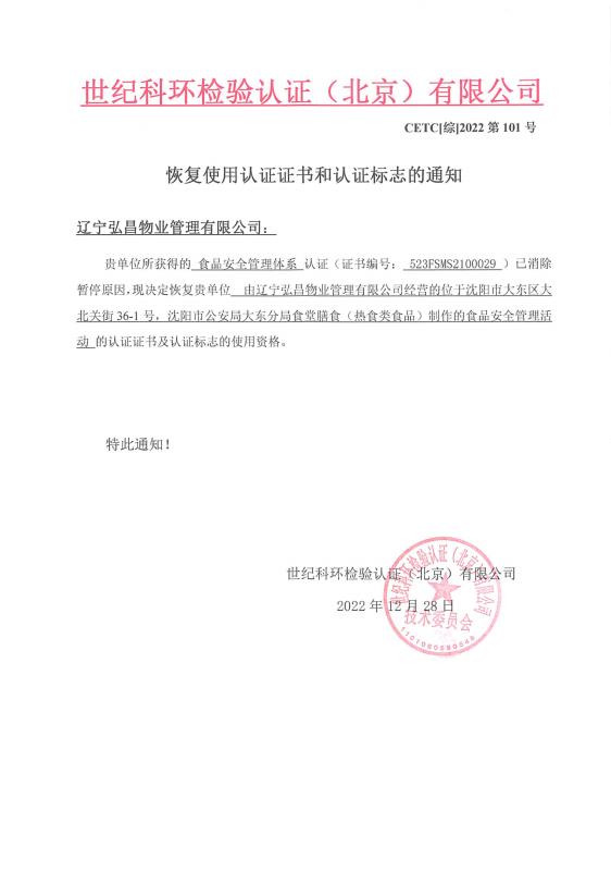 恢復(fù)使用認(rèn)證證書和認(rèn)證標(biāo)志的通知