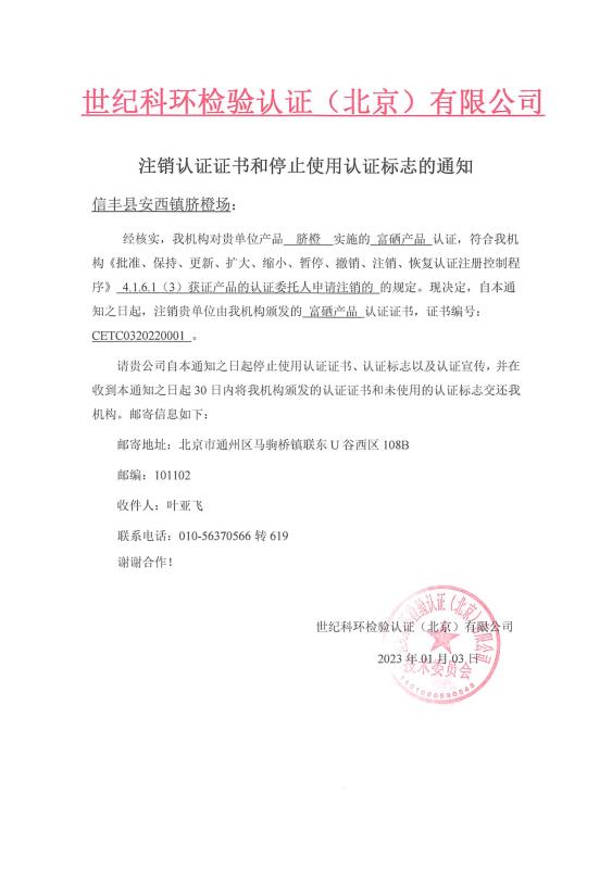 注銷認(rèn)證證書和停止使用認(rèn)證標(biāo)志的通知