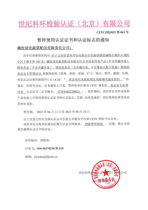 暫停使用認(rèn)證證書(shū)和認(rèn)證標(biāo)志的通知