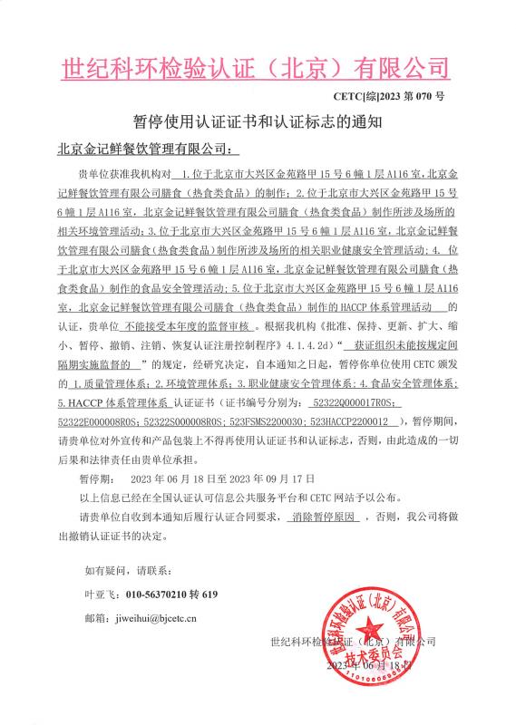 暫停使用認(rèn)證證書和認(rèn)證標(biāo)志的通知