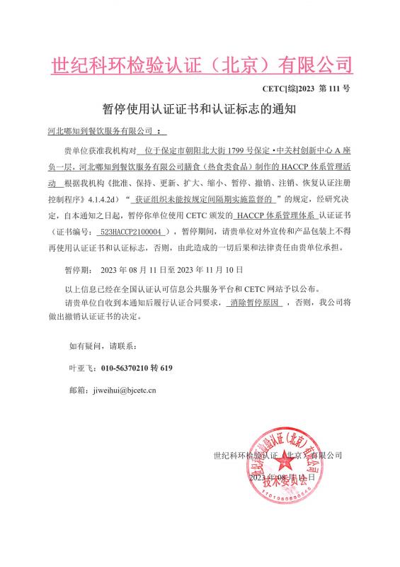 暫停使用認(rèn)證證書(shū)和認(rèn)證標(biāo)志的通知