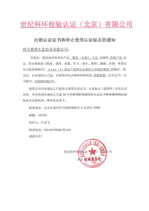 注銷認(rèn)證證書和停止使用認(rèn)證標(biāo)志的通知