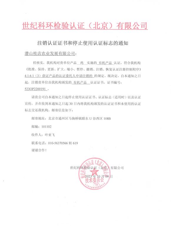 注銷認(rèn)證證書和停止使用認(rèn)證標(biāo)志的通知