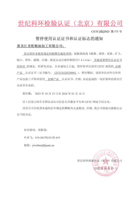 暫停使用認(rèn)證證書(shū)和認(rèn)證標(biāo)志的通知