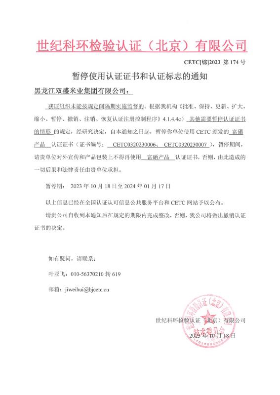 暫停使用認(rèn)證證書和認(rèn)證標(biāo)志的通知