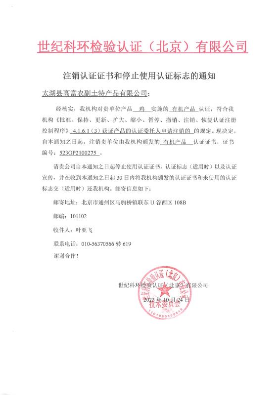 注銷認(rèn)證證書和停止使用認(rèn)證標(biāo)志的通知