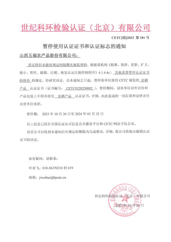 暫停使用認(rèn)證證書和認(rèn)證標(biāo)志的通知