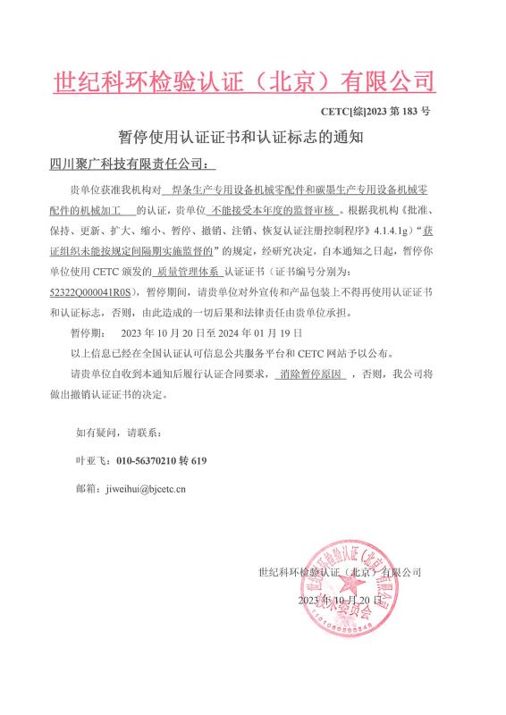 暫停使用認(rèn)證證書和認(rèn)證標(biāo)志的通知