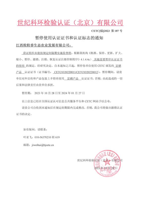 暫停使用認(rèn)證證書(shū)和認(rèn)證標(biāo)志的通知
