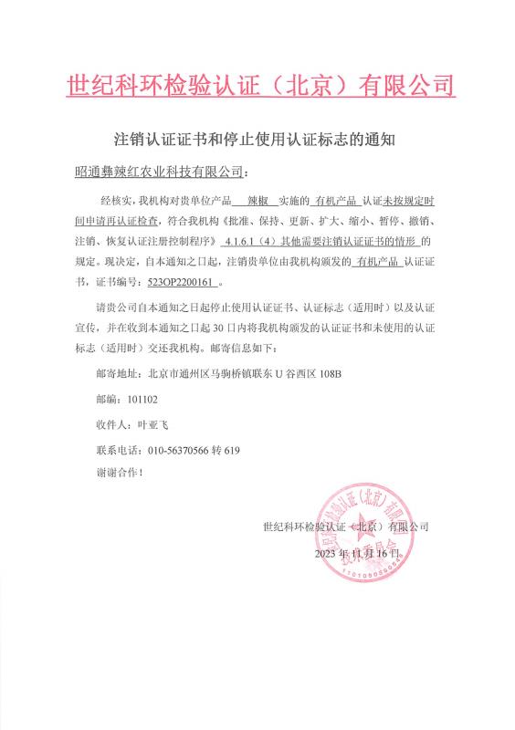 注銷認(rèn)證證書和停止使用認(rèn)證標(biāo)志的通知
