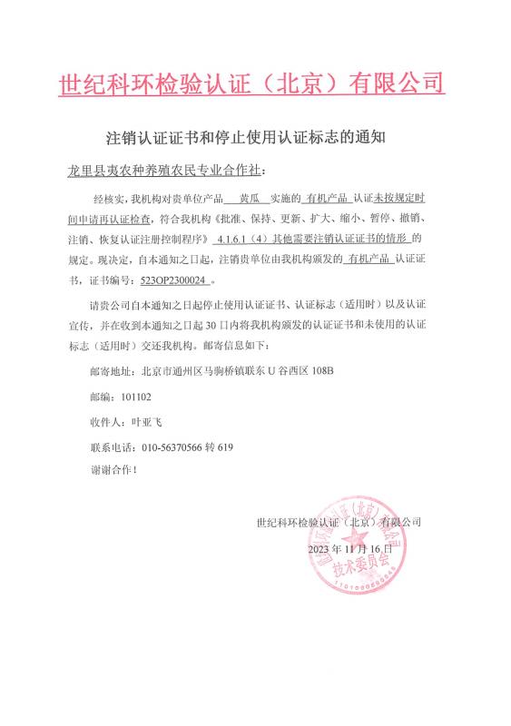 注銷認(rèn)證證書和停止使用認(rèn)證標(biāo)志的通知