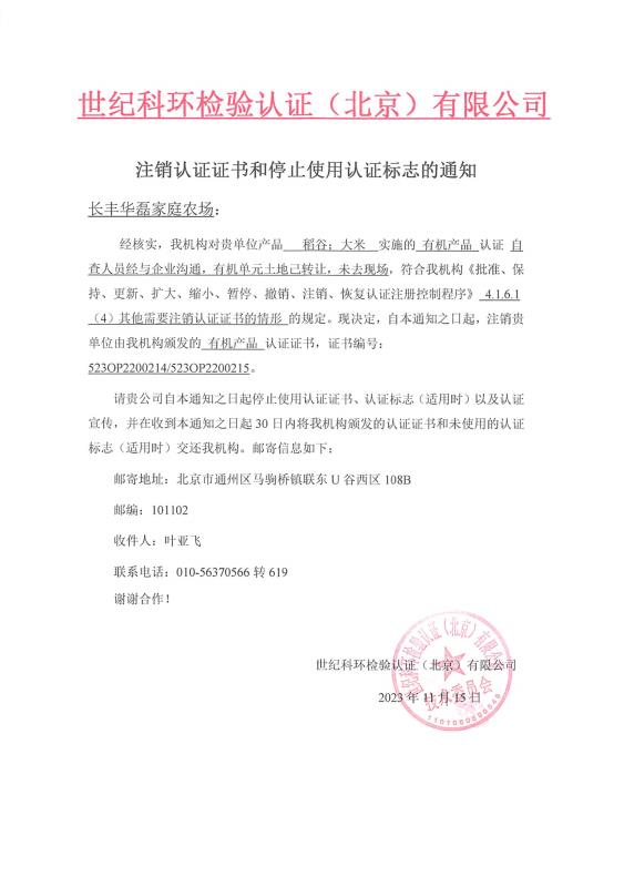 注銷(xiāo)認(rèn)證證書(shū)和停止使用認(rèn)證標(biāo)志的通知