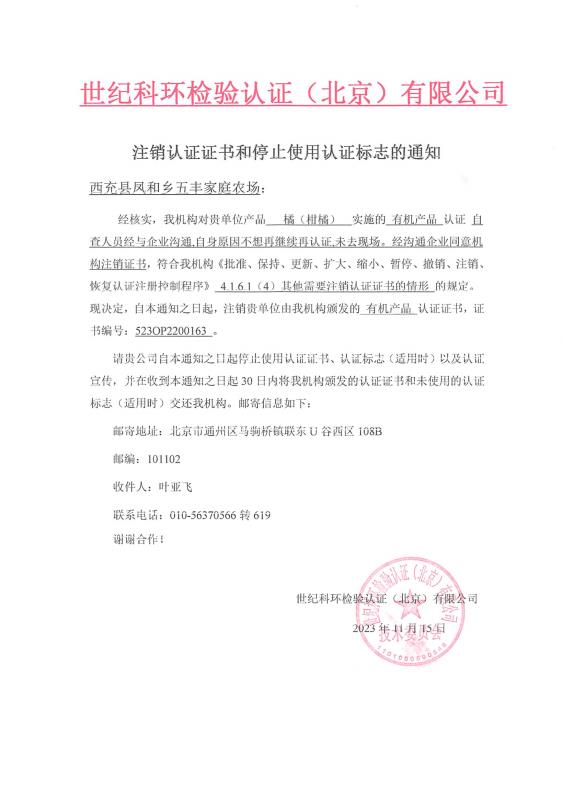 注銷認(rèn)證證書和停止使用認(rèn)證標(biāo)志的通知