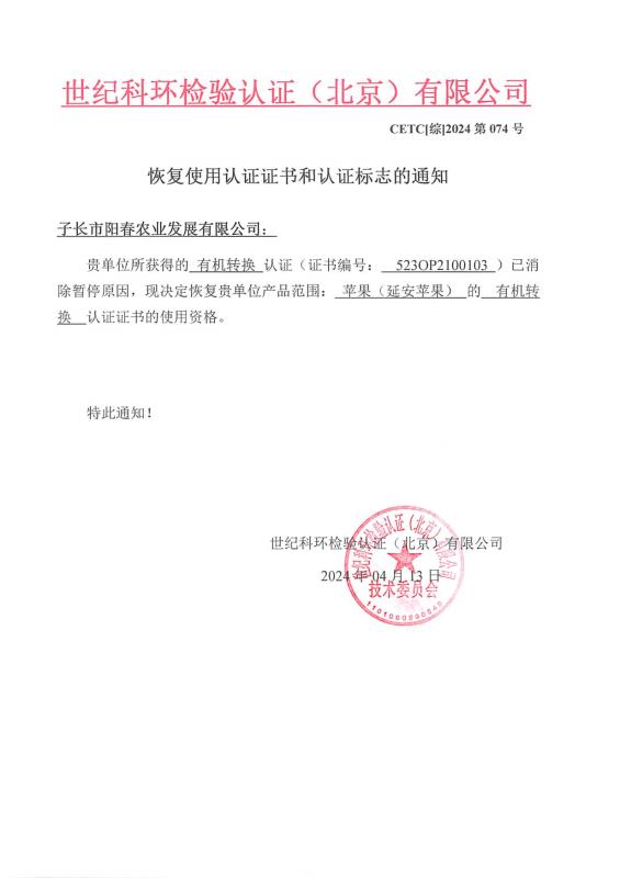 恢復(fù)使用認(rèn)證證書和認(rèn)證標(biāo)志的通知