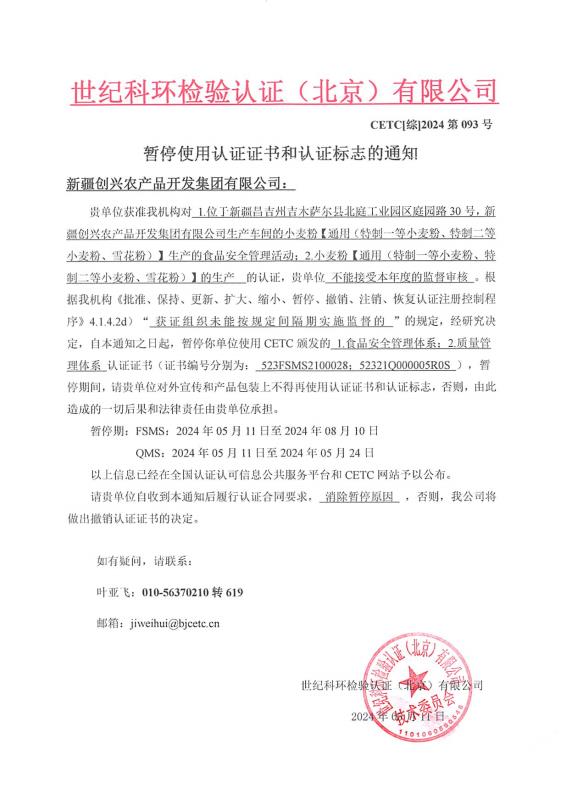 暫停使用認(rèn)證證書(shū)和認(rèn)證標(biāo)志的通知